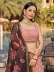Dusty Pink Embroidered Lehenga Set with Floral Dupatta